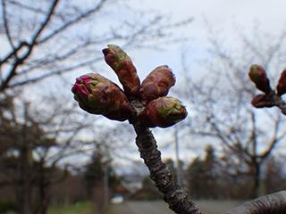 ●昨日は、道内でも雪が降るところもあり、気温が低く、寒い1日となりました。少し膨らんだつぼみも、なかなか膨らまないで状態です。花咲スポーツ公園の一番早く咲く樹が、少し咲き始めた状況です。