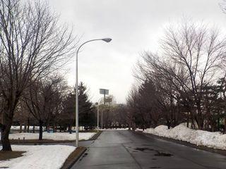 ●春光台公園は、ようやく所々芝生の緑が見えてきましたが、まだまだ雪も多く冬のような景色です。早く暖かくなるように桜の木々たちも祈っています。