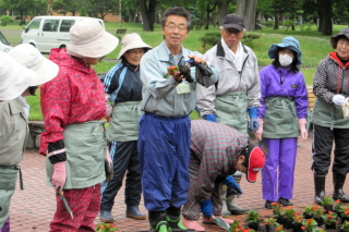 常磐公園の「花壇ボランティア」に協力していただける市民の皆さんを募集したところ、19名の皆さんから応募をいただき、5月13日から実際の活動を行っていただいています。